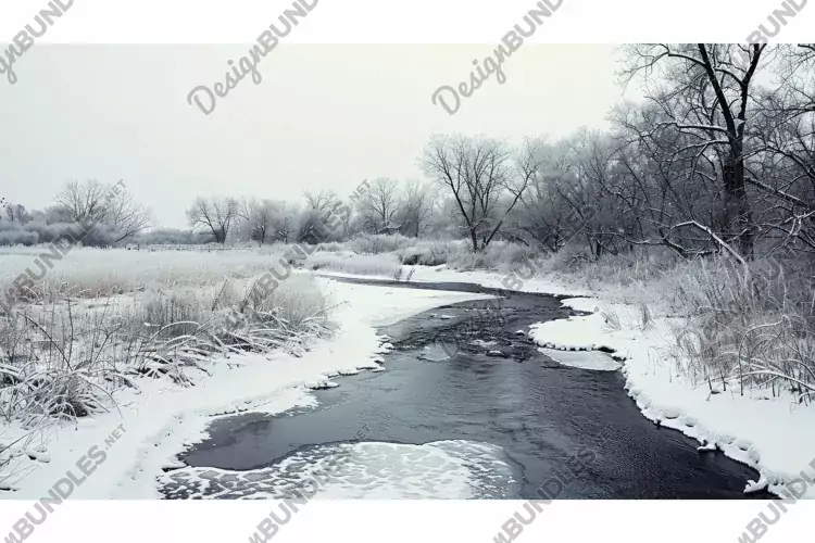 Illustration Nature Winter River Cold Landscape Snowy Frozen Ice Frost