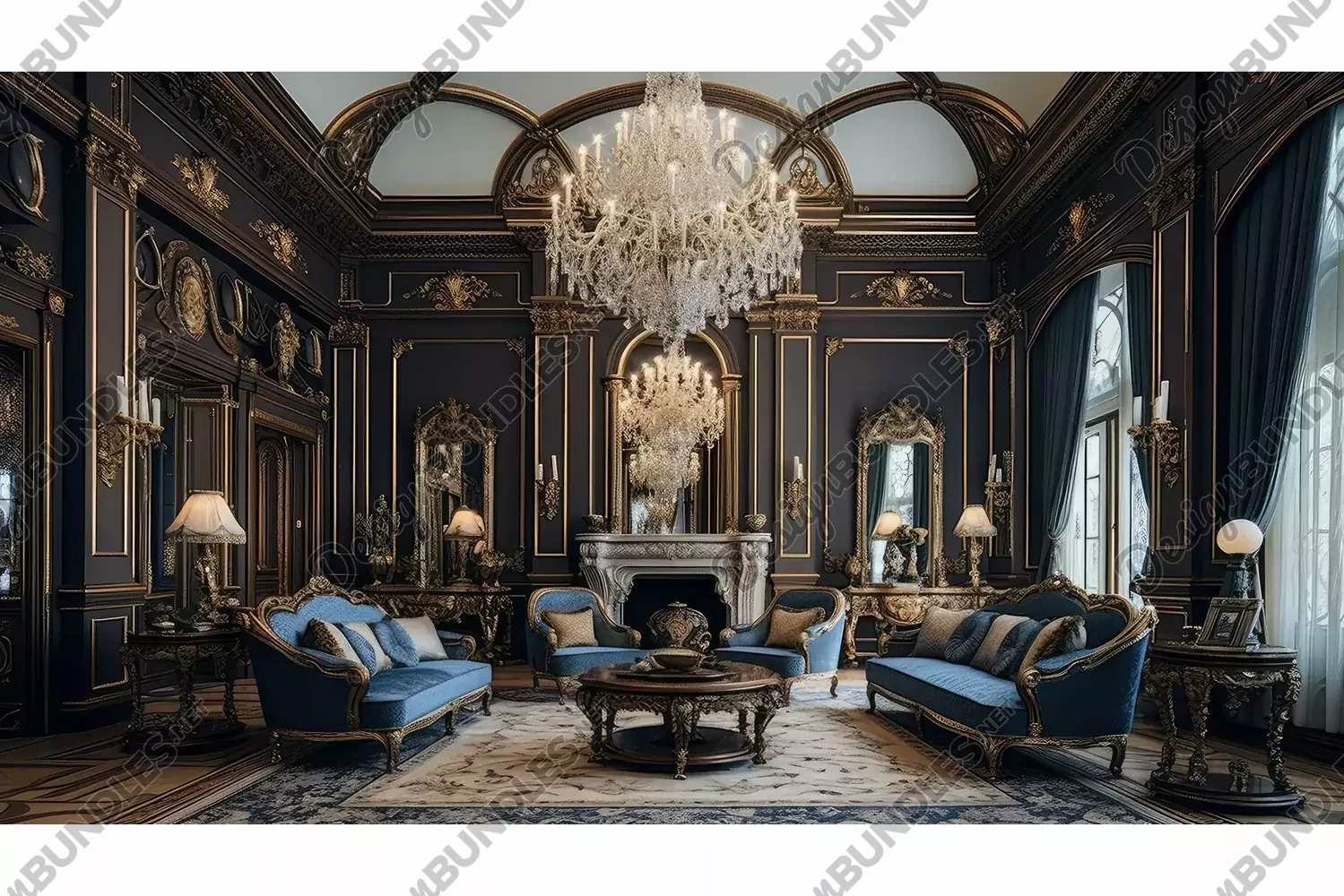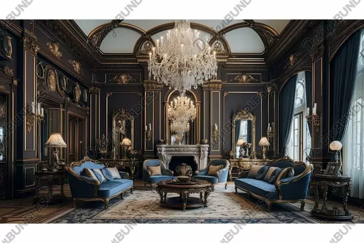 Illustration Interior Chic Luxury Sophisticated Room Glamorous Plush Lavish Opulent