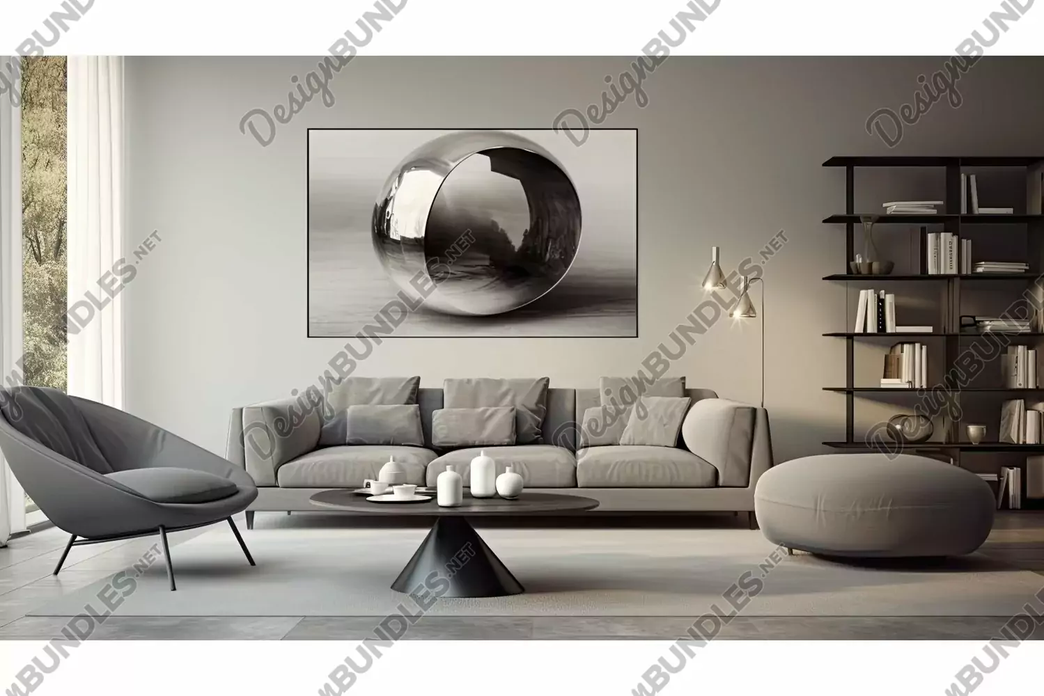 Modern Illustration Elegant Interior Chic Minimalist Neutral Grey Room Cozy