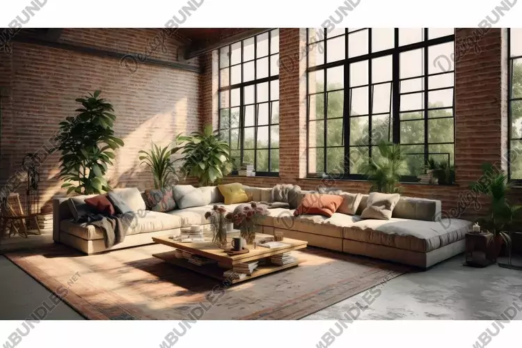 Modern Illustration Industrial Urban Interior Chic Minimalist Room Cozy Loft