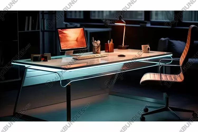 Modern Illustration Light Metal Glass Desk Workspace Sleek Led Illumination