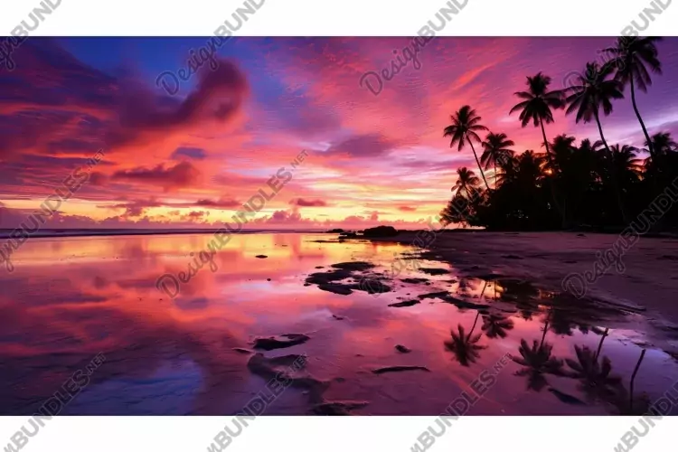 Illustration Pink Backdrop Palm Sky Calendar Silhouettes Shades Breathtaking Sunbeach