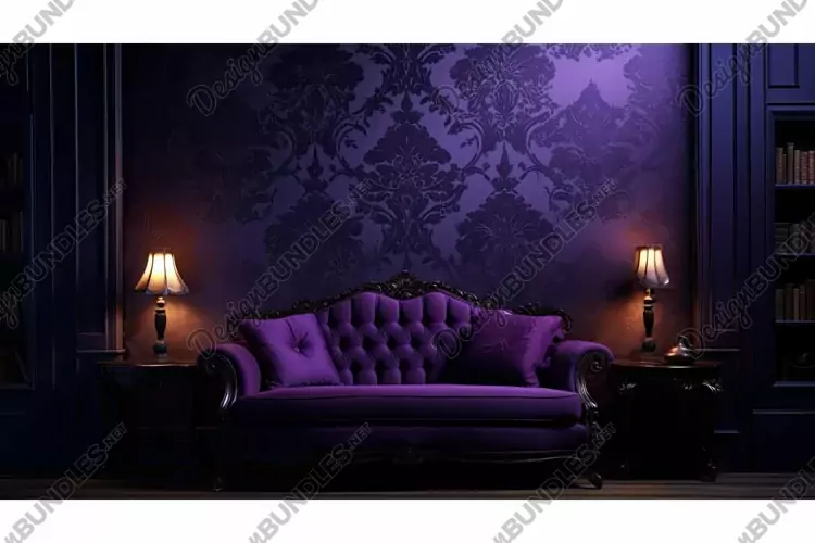 Vintage Illustration Classic Rich Color Wallpaper Purple Damask Inspired Darker