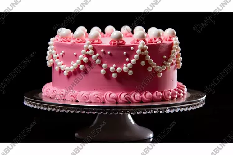cheese pink cake illustration frosting pearls, indulgent rich, vibrant twist cheese pink cake