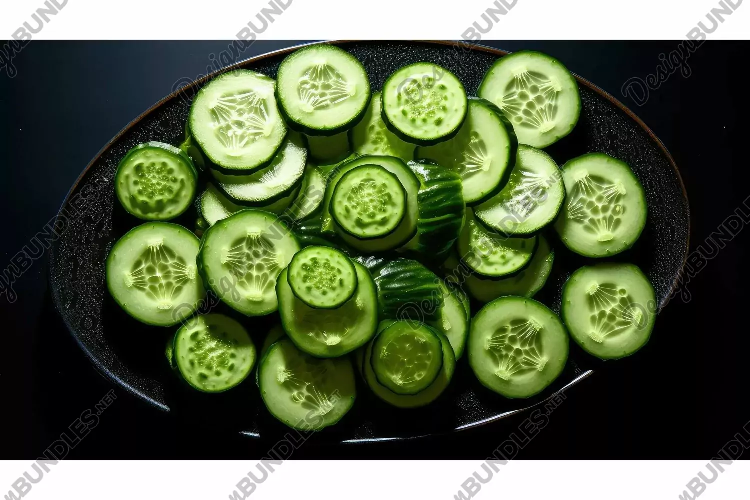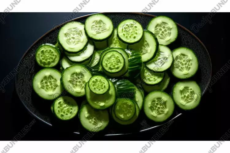 sliced circle cucumber background illustration arranged black, surface light, elegant visually sliced circle cucumber background
