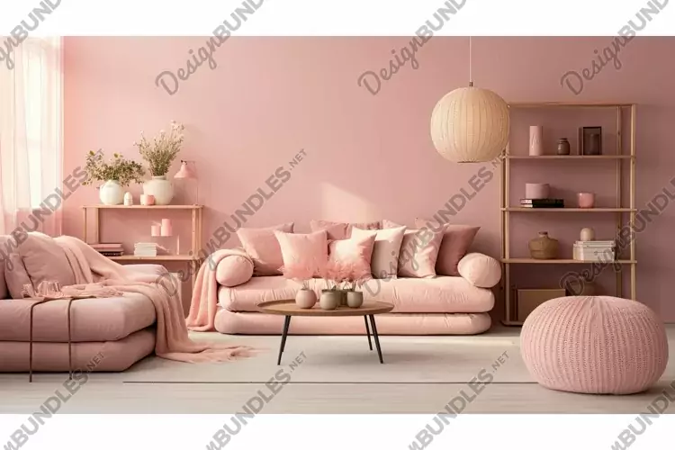 Illustration Soft Pink Interior Furniture Blurred Living Room Cozy Walls