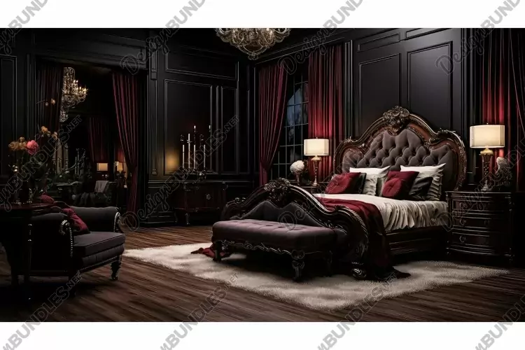 Illustration Elegant Rich Dark Luxurious Grandeur Intricate Detailing Mahogany Opulent