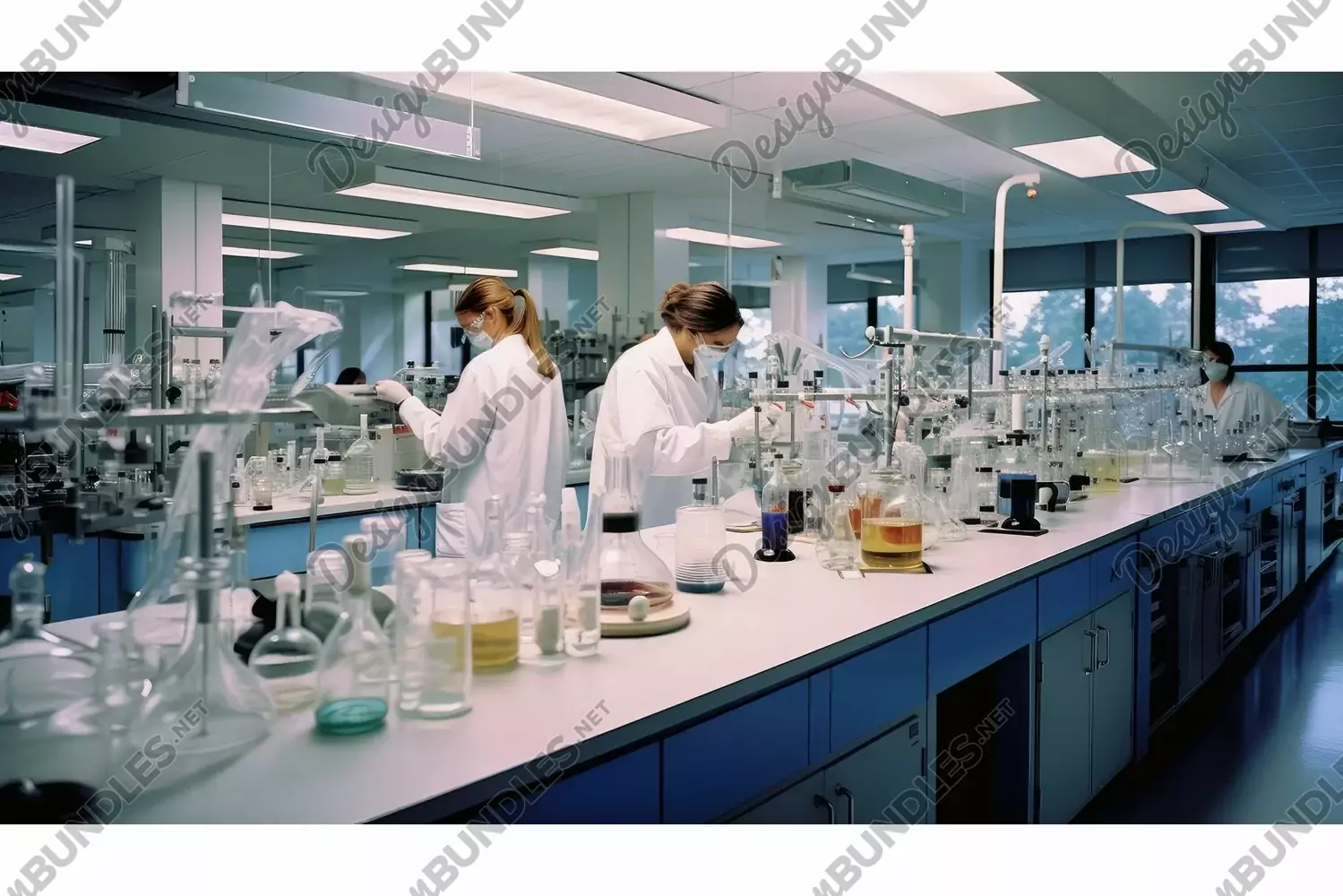 equipment technology lab illustration spectrometer microscope, fume students, safety goggles equipment technology lab