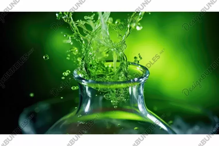 Illustration Dynamic Nature Green Color Vibrant Chemistry Beaker Reaction Bubbling