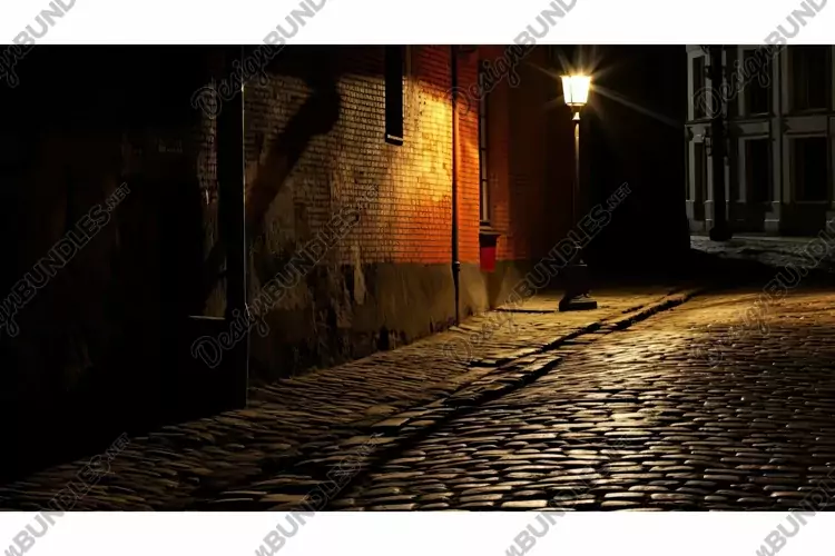 darkness light and shade illustration contrast shadow, glow alleyway, cobblestone path darkness light and shade