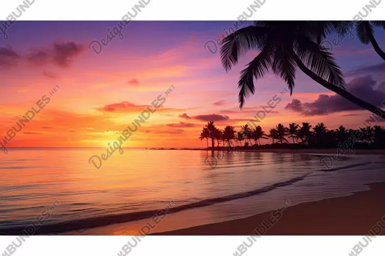 warm golden gradients illustration glow waters, silhouettes palm, trees depth warm golden gradients