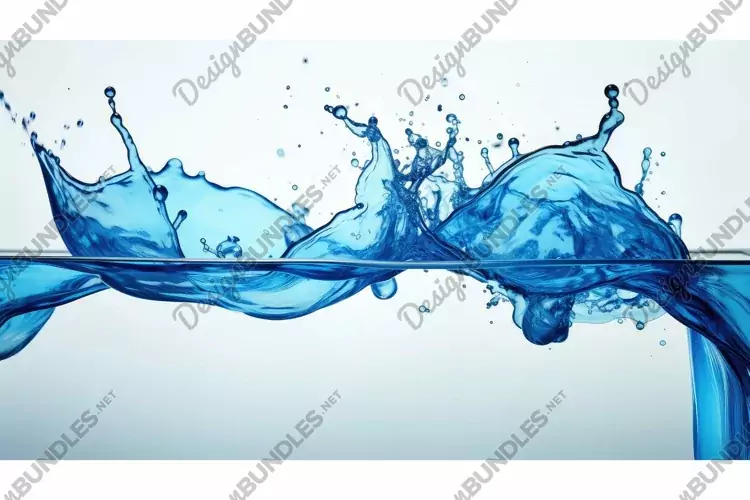 splash blue liquid illustration gravity arc, color contrast, neutral focal splash blue liquid