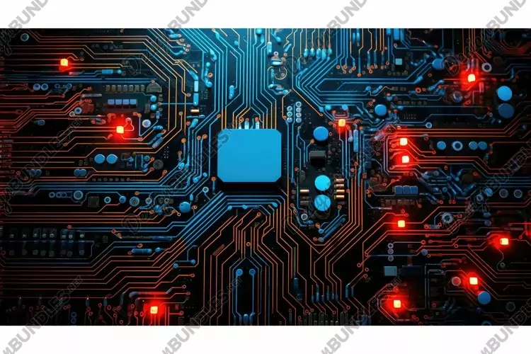 vibrant technology pattern abstract illustration colors arrangement, electronic components, visually striking vibrant technology pattern abstract