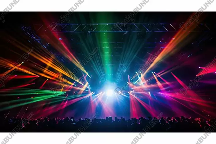 illumination stage light background illustration color vibrant, atmosphere captivating, shadows performers illumination stage light background