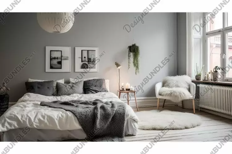 Modern Illustration Elegant Interior Chic Minimalist Neutral Grey Room Cozy