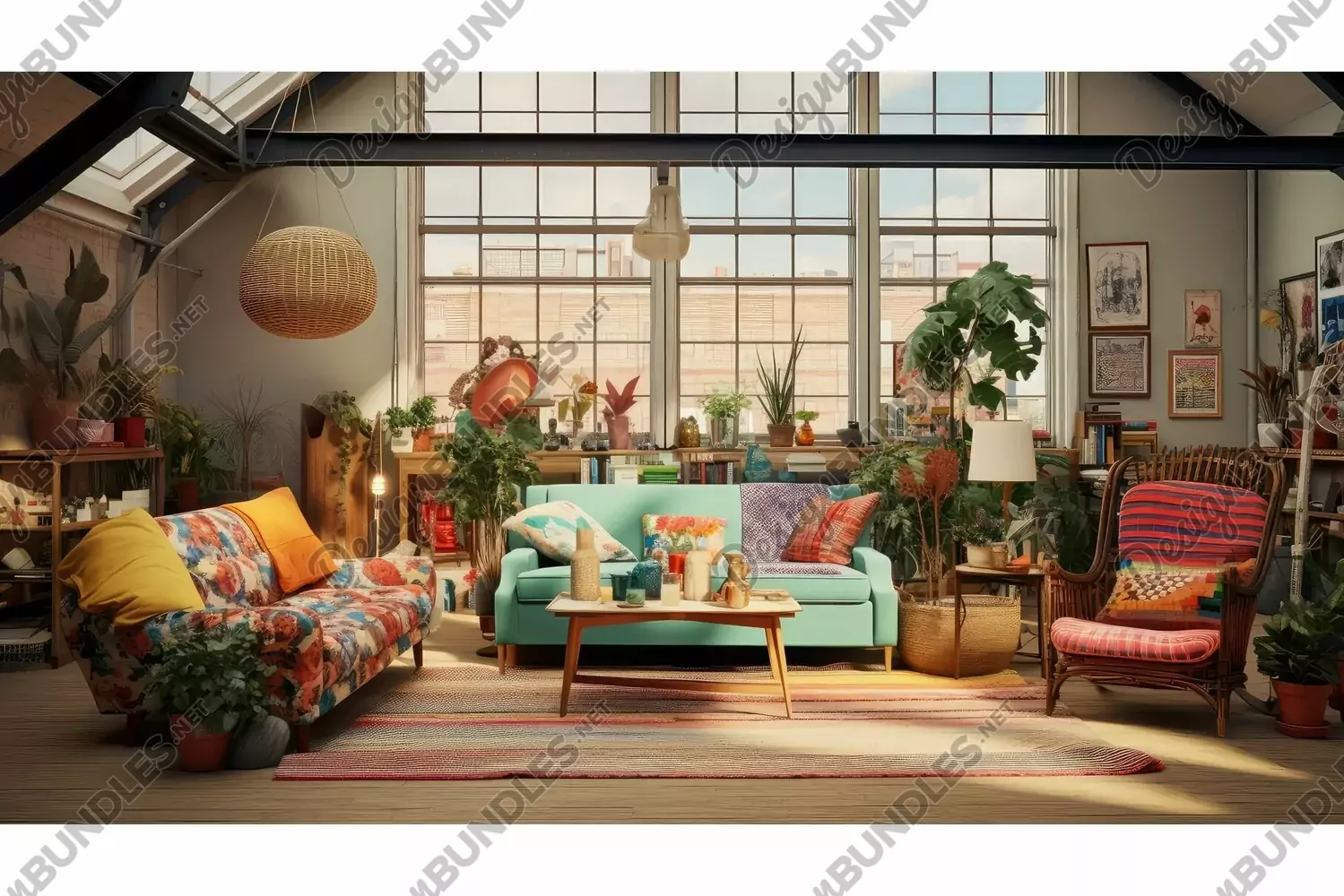 minimalist loft interior room illustration cozy modern, urban chic, contemporary vintage minimalist loft interior room