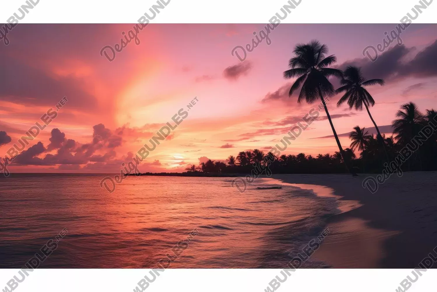 Illustration Pink Backdrop Orange Sky Silhouettes Parchment Mesmerizing Hues Sunbeach