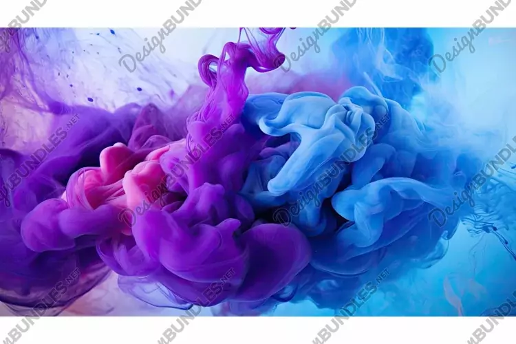 exploding purple blue smoke illustration burst vibrant, colors dramatic, dynamic intense exploding purple blue smoke