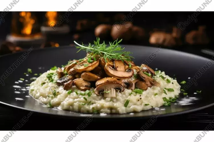 Illustration Black Cheese Mushroom Plate Parmesan Creamy Champignon Risotto Grated