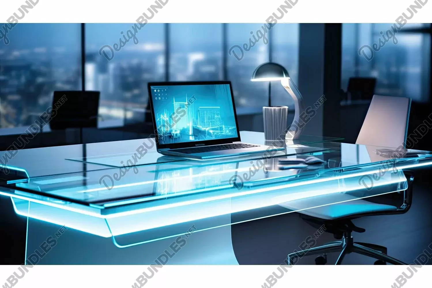Modern Illustration Light Metal Glass Desk Workspace Sleek Led Illumination