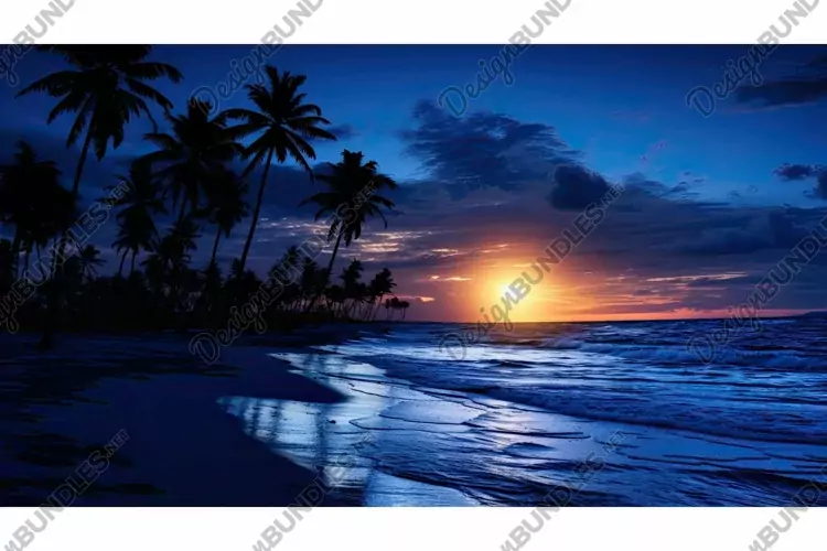 Illustration Backdrop Blue Indigo Sky Silhouettes Deep Shades Mesmerizing Sunbeach