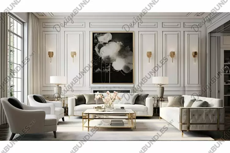 luxurious classic interior illustration chic vintage, refined stylish, traditional ornate luxurious classic interior