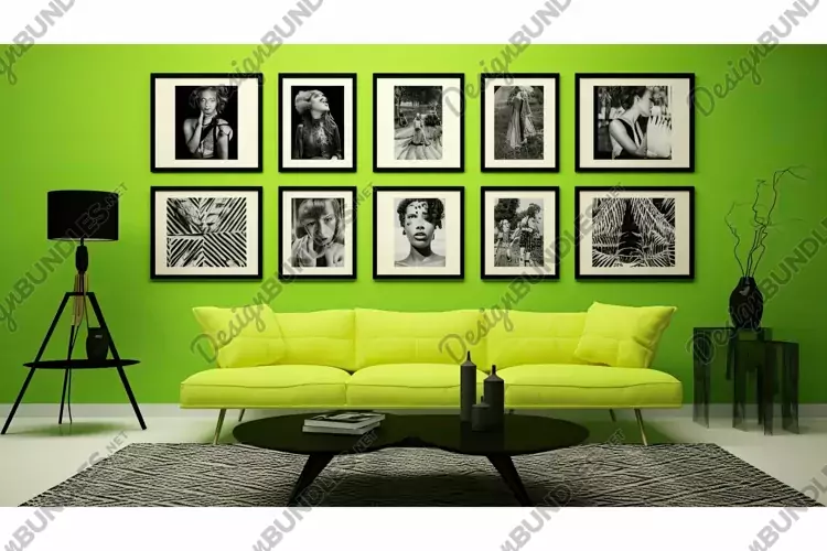 Illustration Bold Green Color Wall Set Contrast Lime Photographs Monochromatic