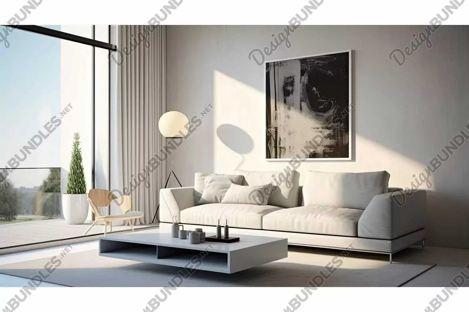 Modern Illustration Design Interior Minimalist Grey Sleek Living Room Sofa