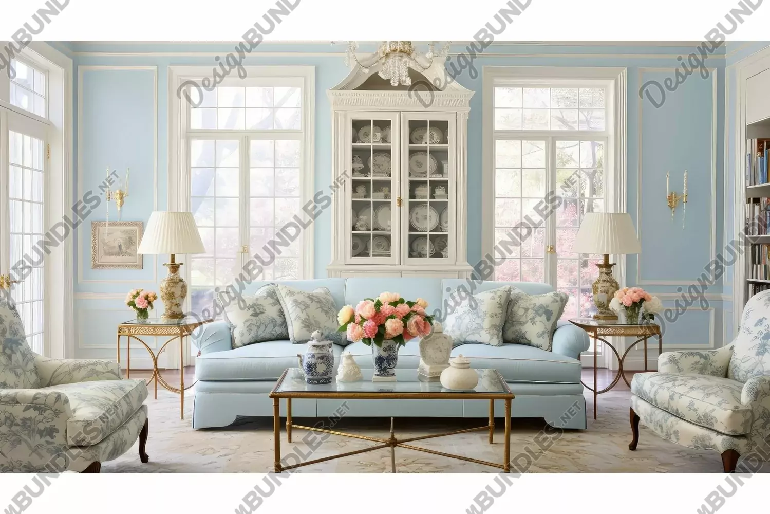 inspired light blue living room illustration design walls, floral femininity, space furnished inspired light blue living room