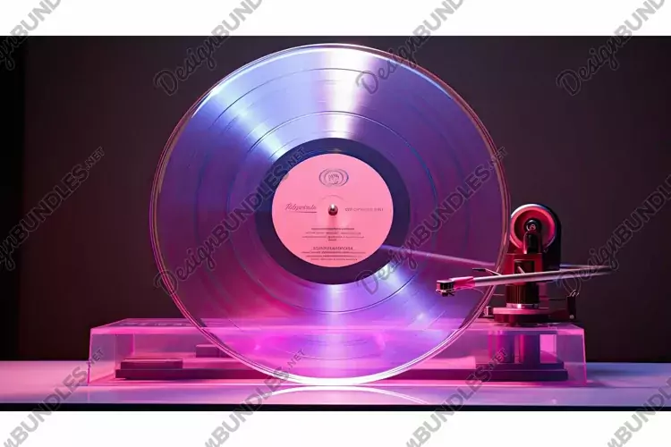 record holographic pink illustration unique design, shimmers light, effect magic record holographic pink