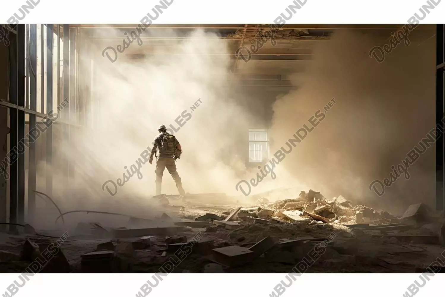 Illustration Interior Dust Isolation Worker Chaos Blurred Demolition Debris Vulnerability
