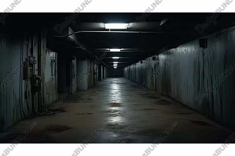 mysterious long dark hallway illustration creepy narrow, dim spooky, ominous chilling mysterious long dark hallway