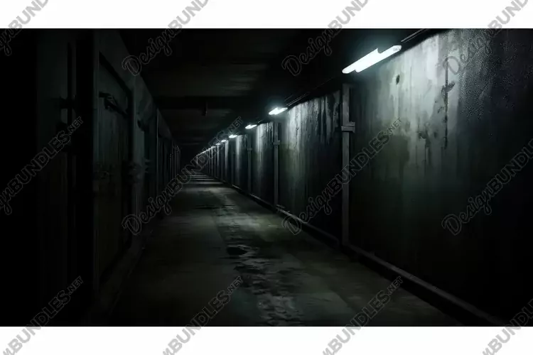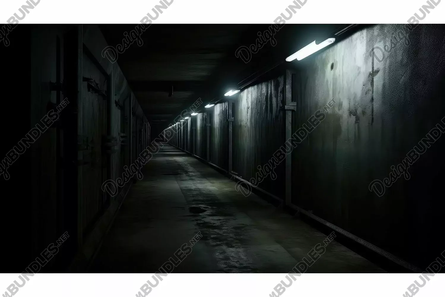 eerie long dark hallway illustration mysterious creepy, narrow dim, spooky ominous eerie long dark hallway
