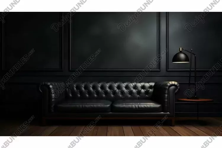 Illustration Black Dark Wall Leather Luxurious Room Couch Lit Dimly