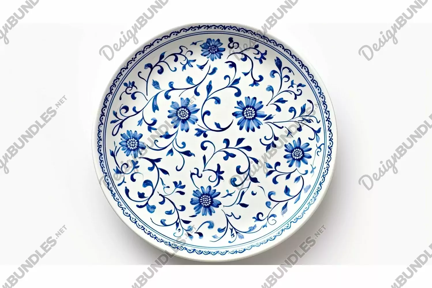 showcases blue white pattern illustration mesmerizing ceramic, plate intricate, delicate floral showcases blue white pattern