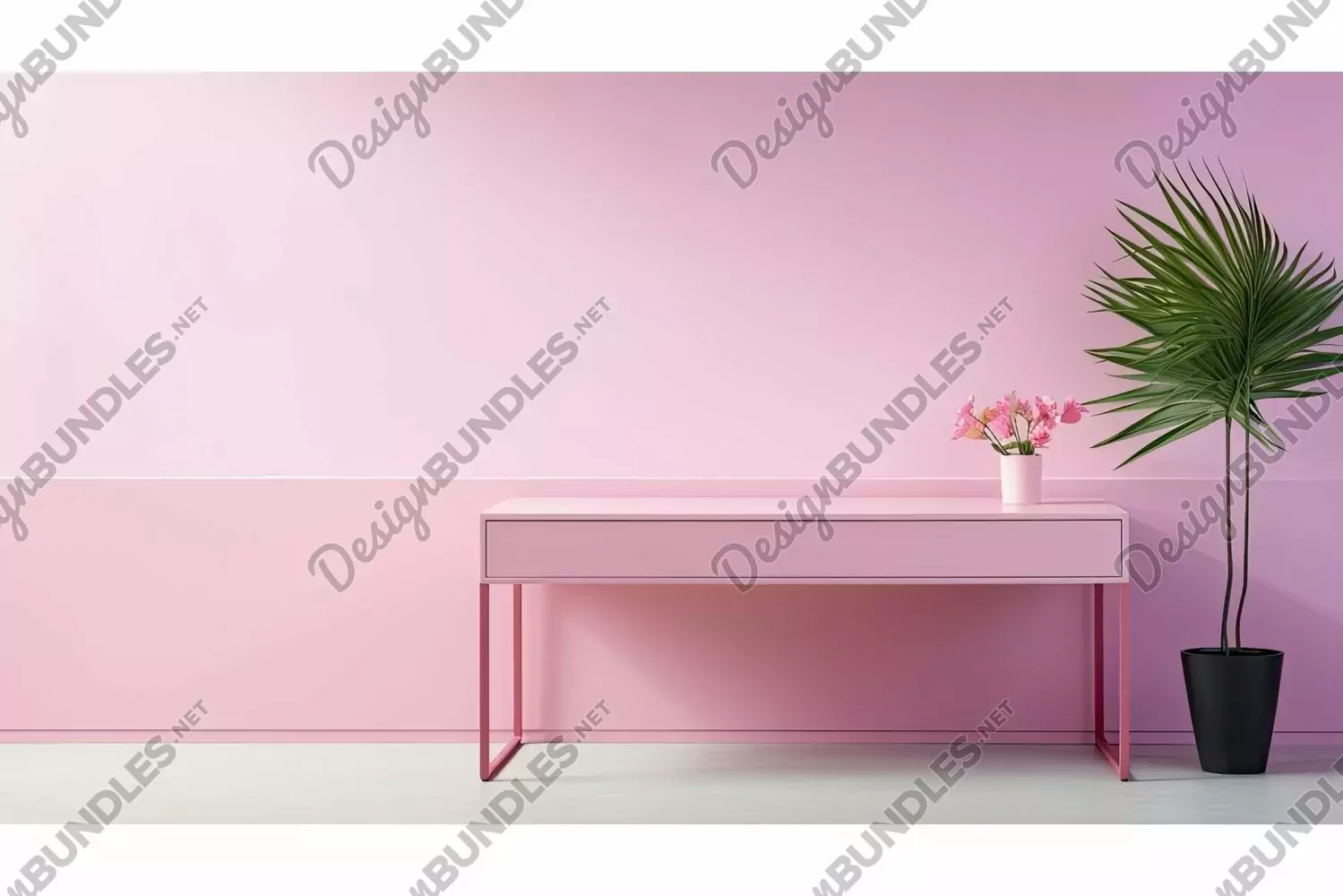stylish pink desk illustration modern elegant, workspace minimalist, trendy vibrant stylish pink desk