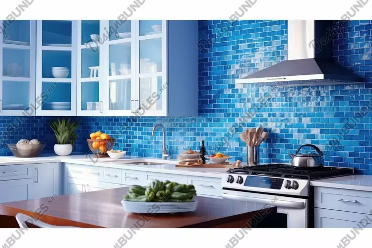 decor room blue background illustration wall paint, furniture style, modern cozy decor room blue background