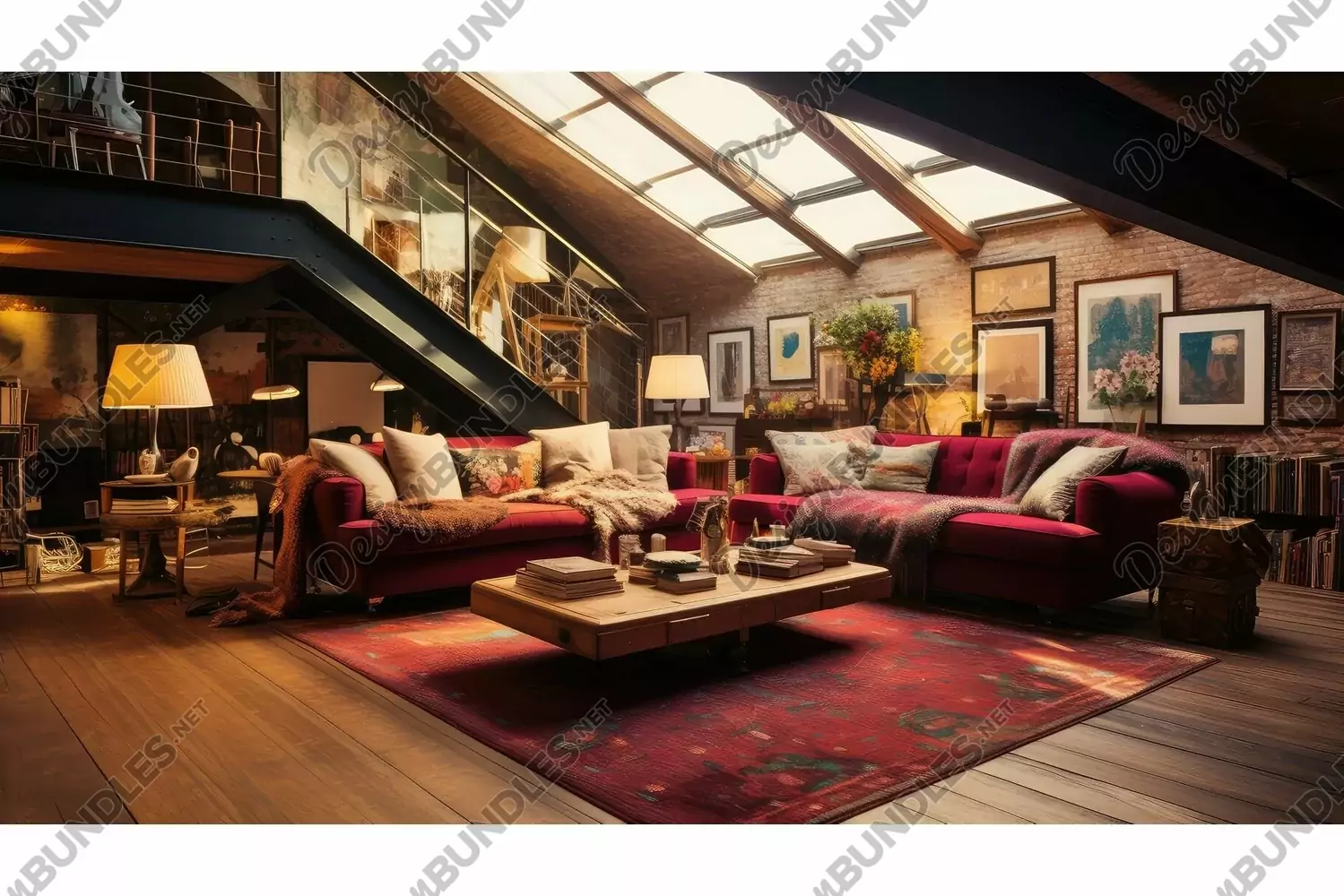 Modern Illustration Industrial Urban Interior Chic Minimalist Room Cozy Loft