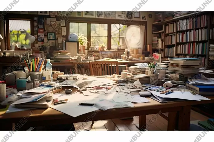 Modern Illustration Design Interior Minimalist Decor Furniture Table Blurred Room