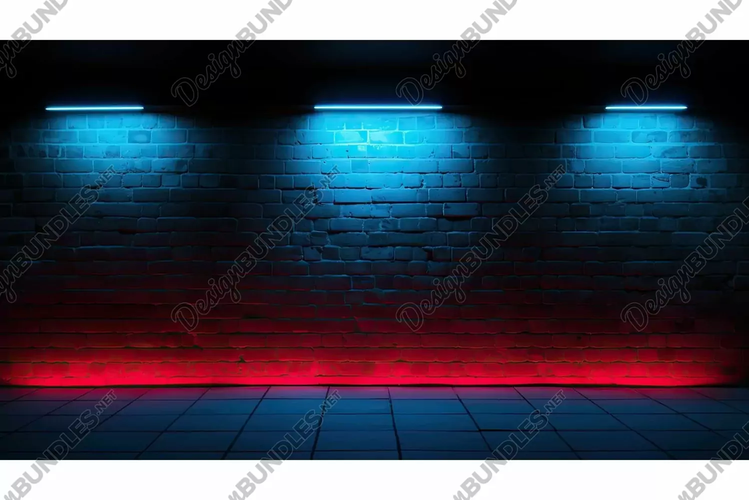 Illustration Light Neon Wall Blue Vibrant Red Contrast Brick Illuminated
