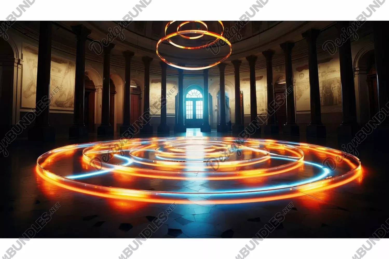 Modern Illustration Contemporary Geometric Design Abstract Circle Lights Installation Illumination