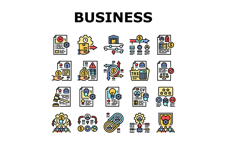 business process automation icons set vector. optimization efficiency, workflow strategy, innovation management, analysis business process automation color line illustrations