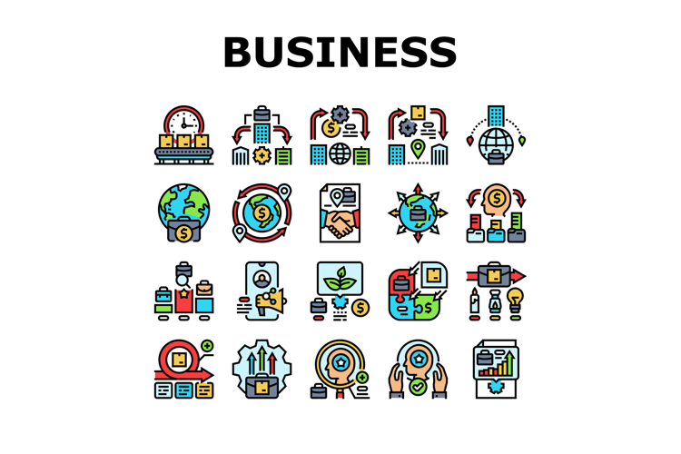 modern business strategy icons set vector. leadership, marketing branding, networking entrepreneurship, sustainability modern business strategy color line illustrations