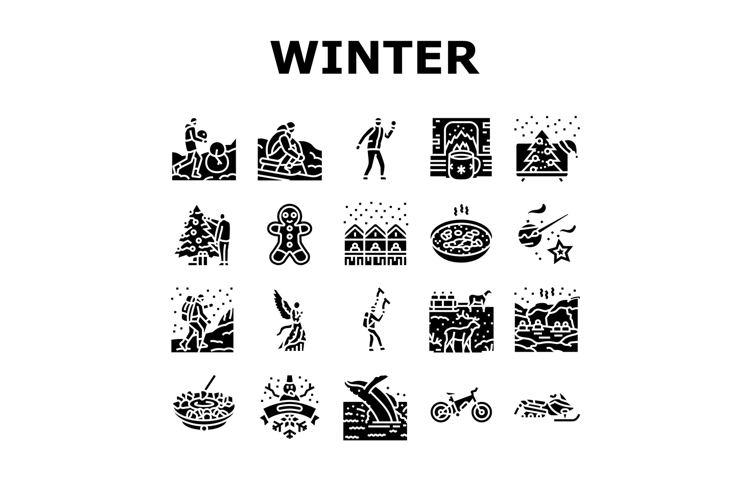 winter spend time icons set vector