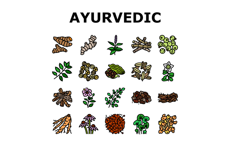 ayurvedic herbs medicine health icons set vector example image 1