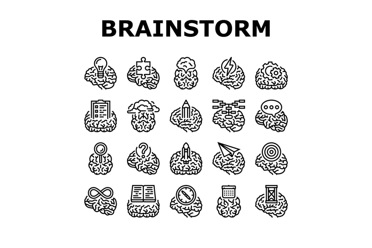 brainstorm business team think icons set vector example image 1