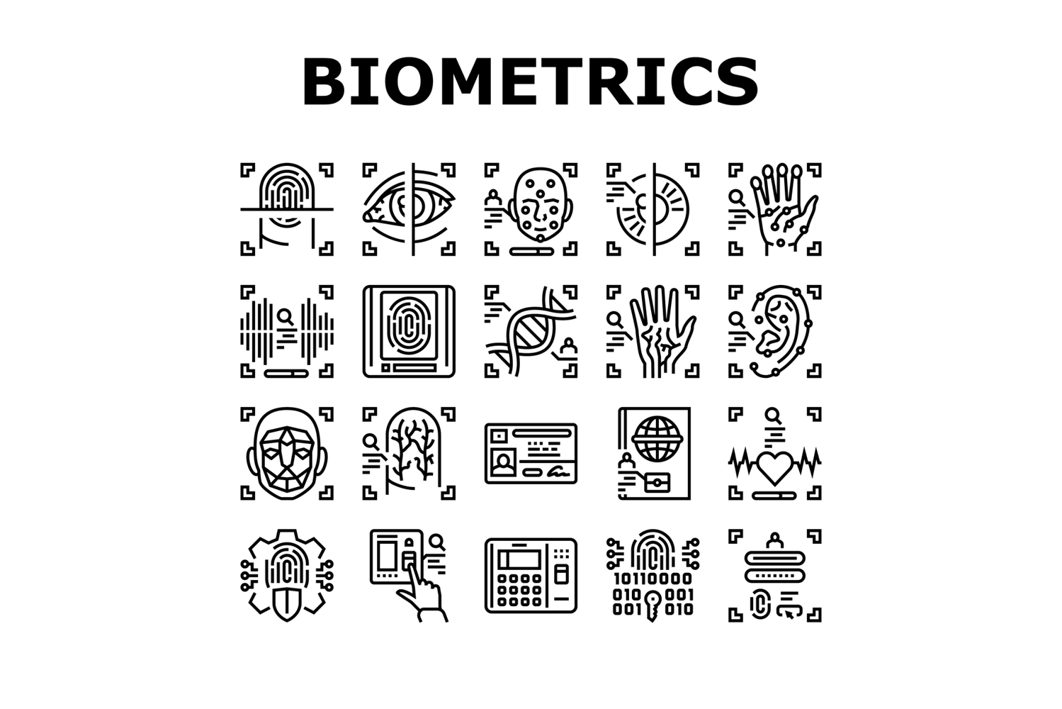 biometric fingerprint id finger icons set vector. identity scan, access verification digital recognition privacy, identification print biometric fingerprint id finger black contour illustrations