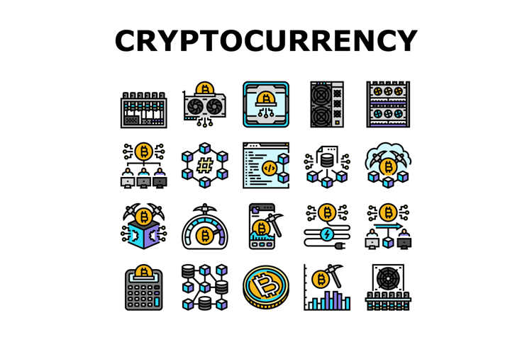 cryptocurrency mining blockchain icons set vector example image 1