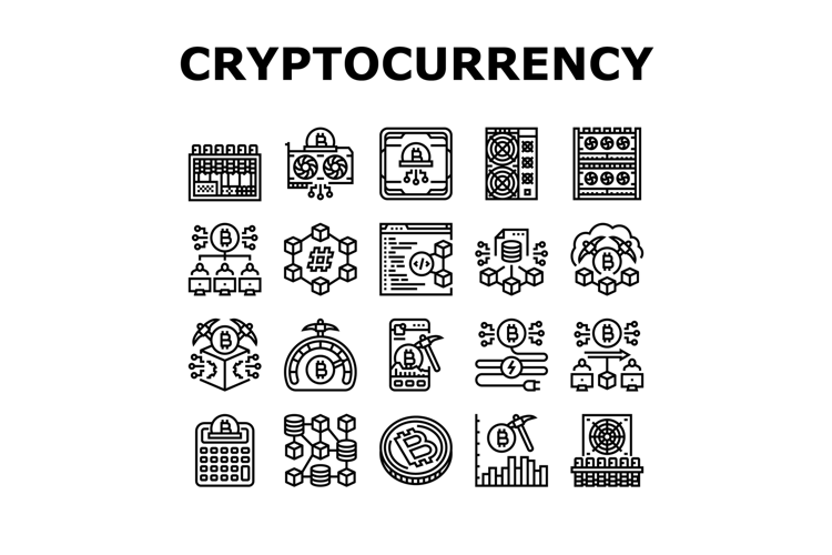 cryptocurrency mining blockchain icons set vector example image 1