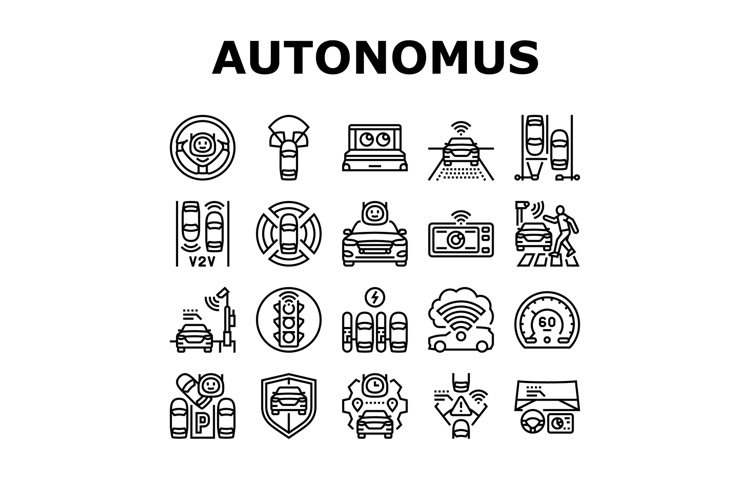 autonomous vehicle self driving icons set vector example image 1